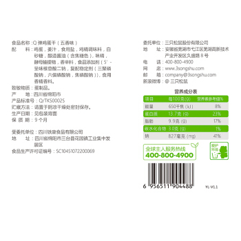 三只松鼠Q弹鸡蛋干五香味豆干卤味干子休闲小吃辣条零食素食240g/袋 |