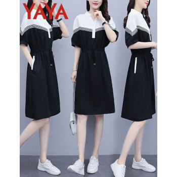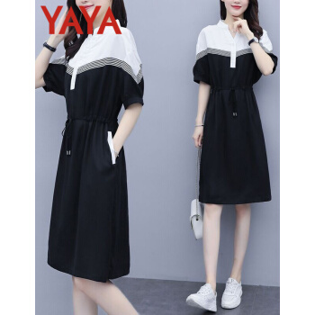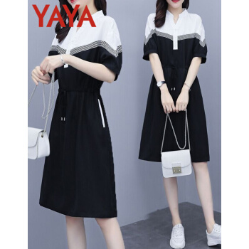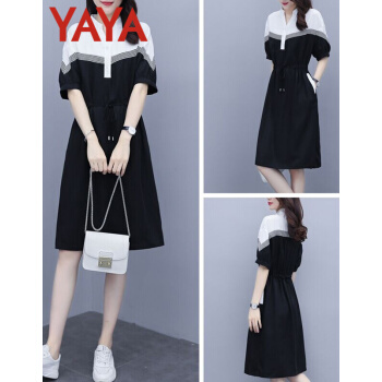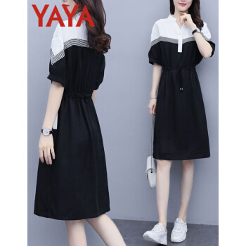 鸭鸭服饰(yaya)连衣裙女女装夏季新款大码女装气质显瘦中长款收腰减龄裙子女 黑色 请选正确尺码 |