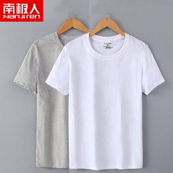 南极人(Nanjiren)两件装 男士短袖t恤圆领黑白体恤T 纯色半袖上衣服打底衫男装CST01 白+灰 L |