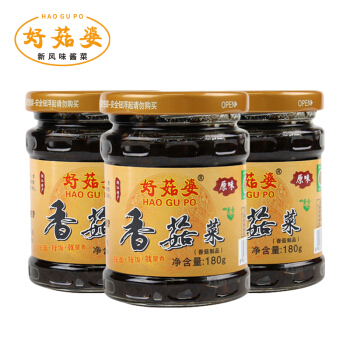 好菇婆 香菇菜酱腌菜下饭菜 180g瓶装 广东潮汕特产 香菇酱 小菜开胃菜 拌面拌饭酱 早餐配菜 【原味香菇菜 3瓶装】540g |