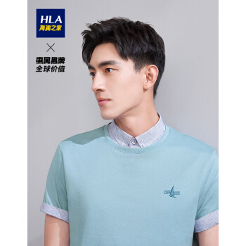 HLA海澜之家前胸绣花短袖T恤夏季新品圆领棉质男白色半袖t恤HNTBJ2Q072A 浅蓝71 175/92A/L |