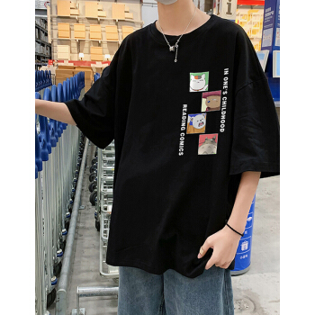 雪域森林短袖T恤男装夏季潮流时尚衣服男潮牌圆领印花宽松T恤半袖男 20855白色 L |