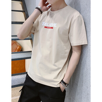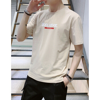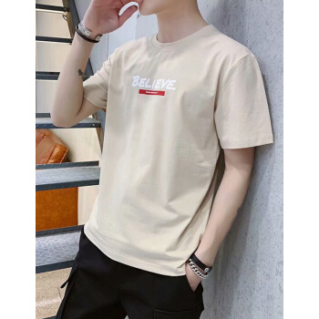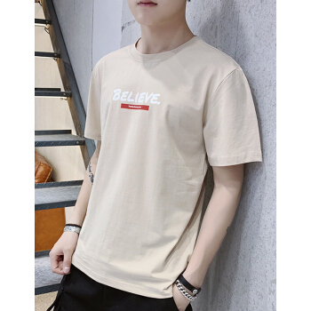 尊尚鸟 短袖T恤男夏季韩版潮流短袖男士半袖t恤印花休闲修身青年学生体恤衣服男装服饰男生t恤 1018杏色 L |
