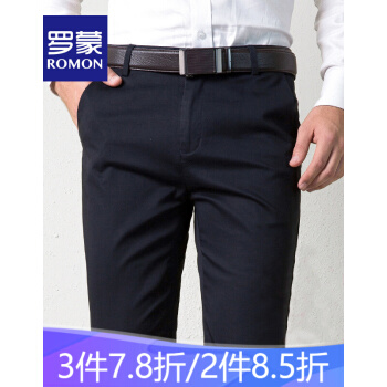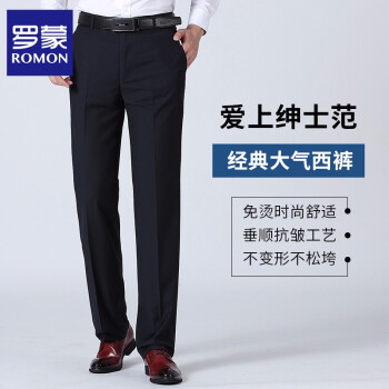 罗蒙(ROMON)西裤男 新款男士商务休闲修身正装抗皱免烫直筒裤子 藏青色 33 |