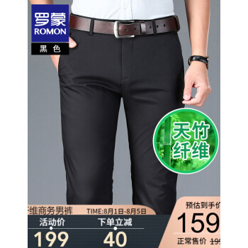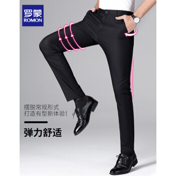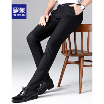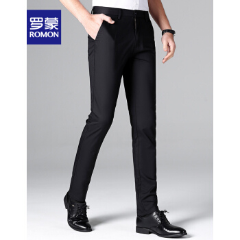【专柜正品】罗蒙休闲西裤男竹纤维时尚春季新款商务黑色百搭正装修身抗皱西装免烫休闲男裤 黑色 32 |