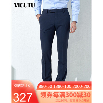 威可多VICUTU男士单西裤商务时尚深蓝色休闲羊毛西装裤VBS18122335 深蓝色 180/90B-2.7尺 |