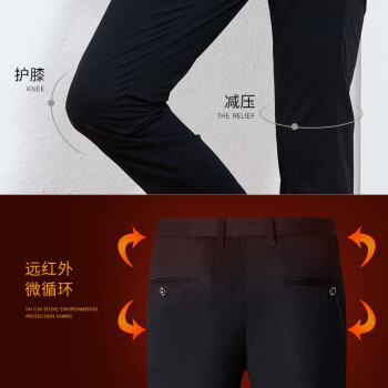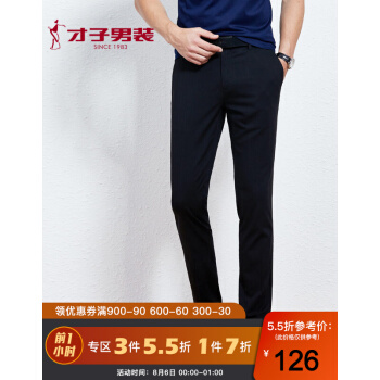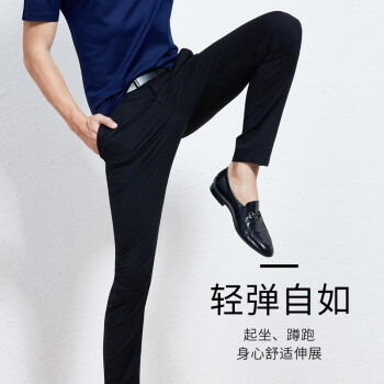 才子男装春秋季新品纯色修身微弹百搭易打理时尚商务休闲西裤男士 黑色 32/82cm |