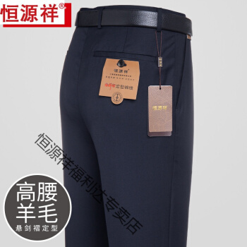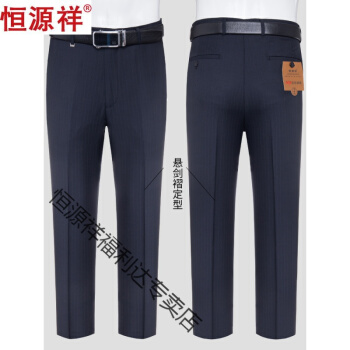 【恒源祥高端奢侈品牌 旗舰官方店】羊毛西装裤男夏季高腰宽松条纹免烫西裤商务正装男裤薄 西裤TH34287藏青(含29.9%羊毛) 94 |