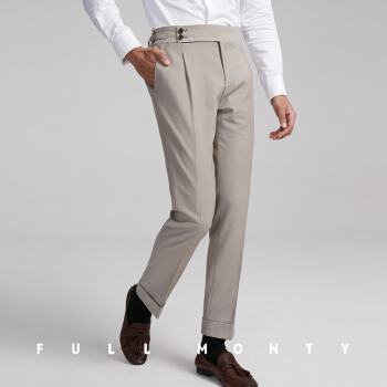 FULL MONTY米白色平纹绵羊毛西裤男高腰巴黎扣商务修身西装裤子春夏 米色1354 32 |
