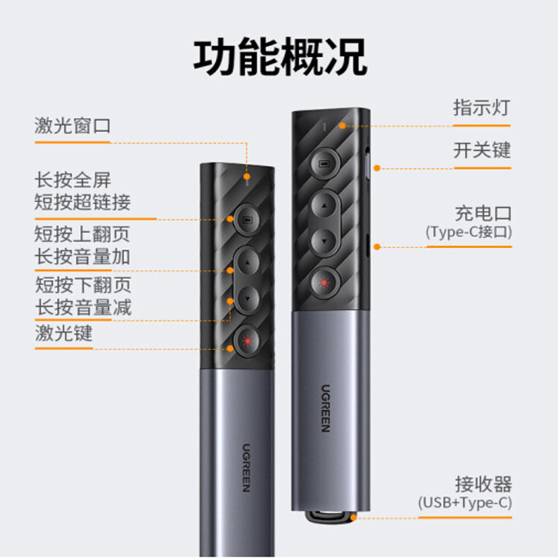 绿联(UGREEN) 激光翻页笔 PPT多媒体教学演讲笔 电子教鞭 红外无线遥控演示器放映笔 红光款 LP386(80136) |