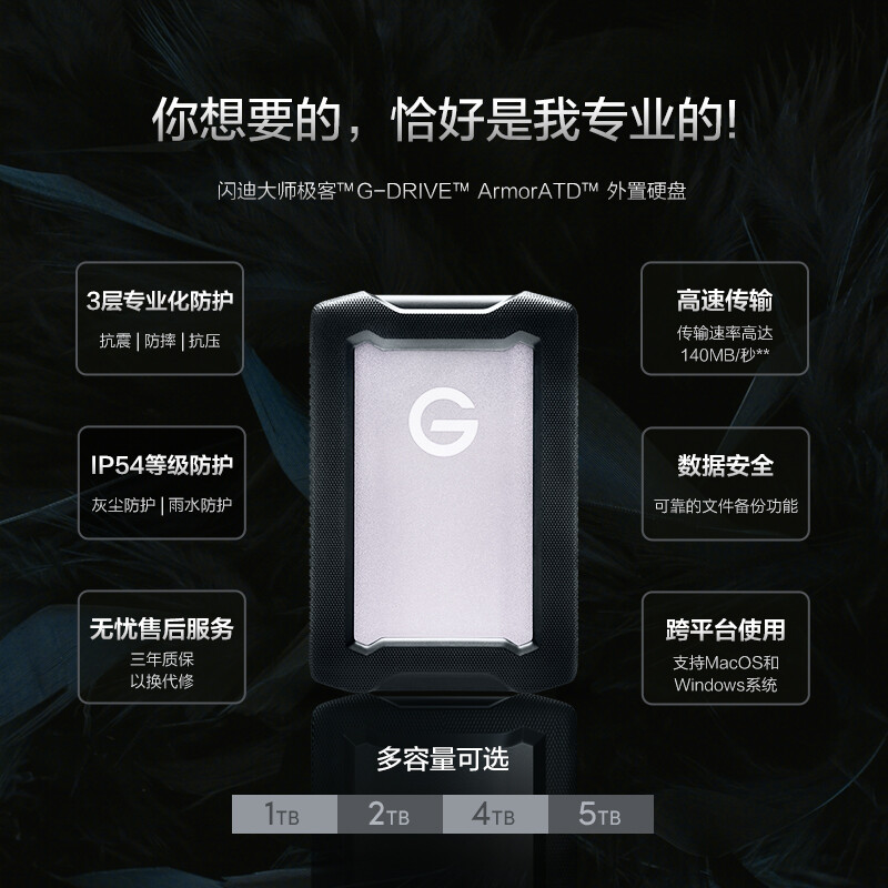 闪迪大师极客 5TB 移动硬盘 USB3.1 Armor ATD 2.5英寸 机械硬盘 |