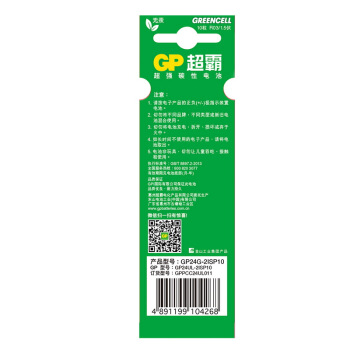 超霸(GP)24G-2ISP10碳性电池7号10节装闹钟/遥控器/手电筒/收音机AAAR03 |