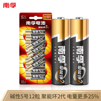 南孚(NANFU)5号碱性电池12粒 聚能环2代 适用于儿童玩具/血压计/血糖仪/挂钟/键盘/遥控器等 LR6AA |