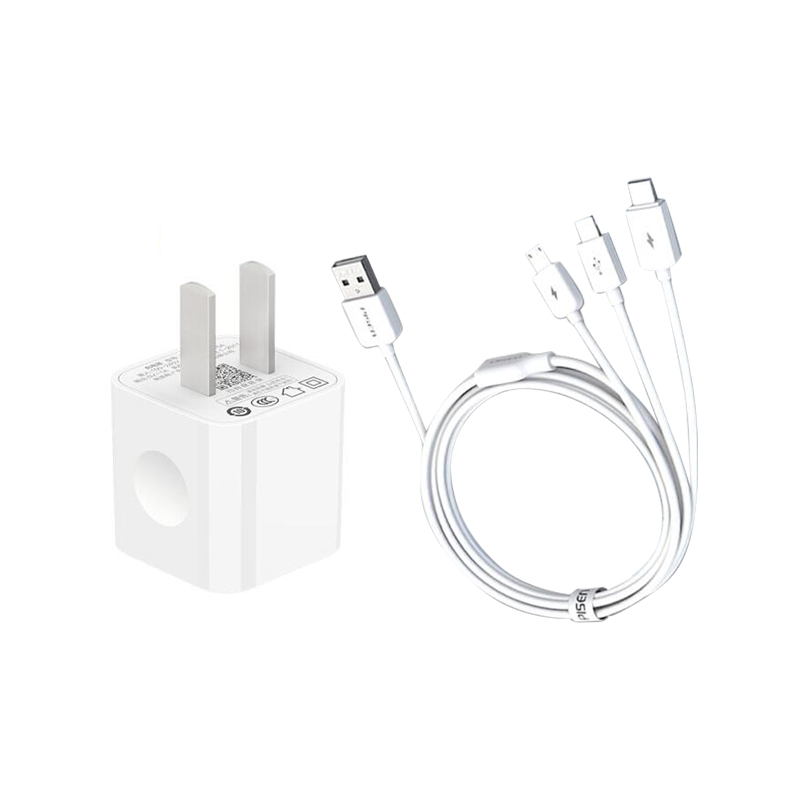 手机充电器3合1数据线套装【ABS/白色】 |