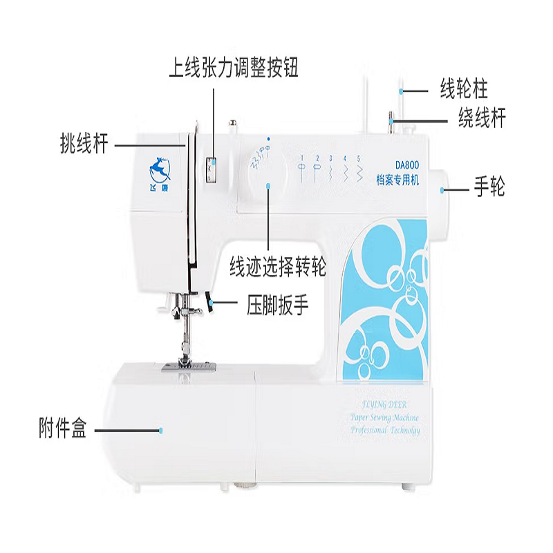 飞鹿DA800 文书档案装订专用缝纫机 吃厚30页70gA4纸文件资料线装机 全家福套餐 |