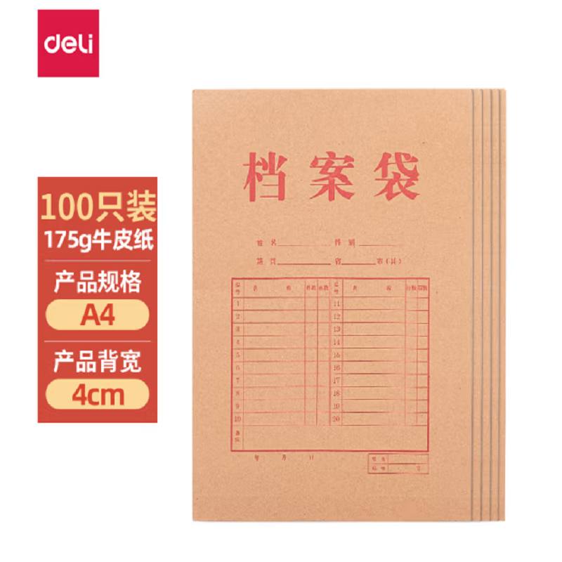 得力(deli)牛皮纸档案袋 100只 27048 |