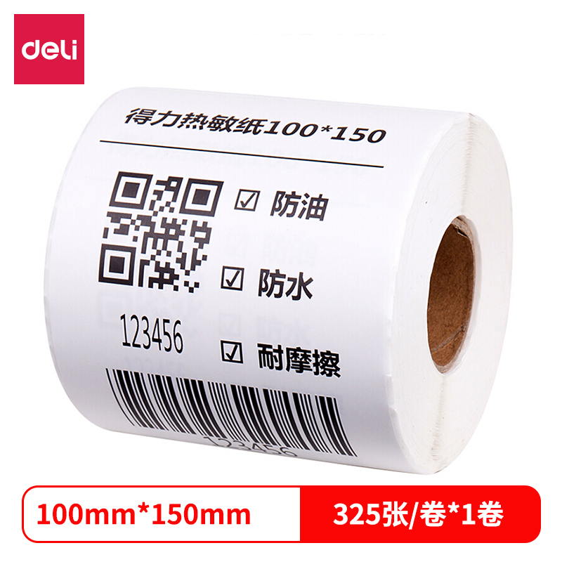 得力12008三防热敏标签纸(100*150mm-325张)(白)(1卷/筒) |