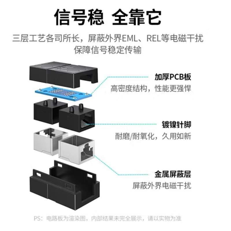 绿联(UGREEN) 绿联RJ45网线连接器电脑网线双通头模块直通头水晶头5/6/7类网络连接线延长 黑色 |