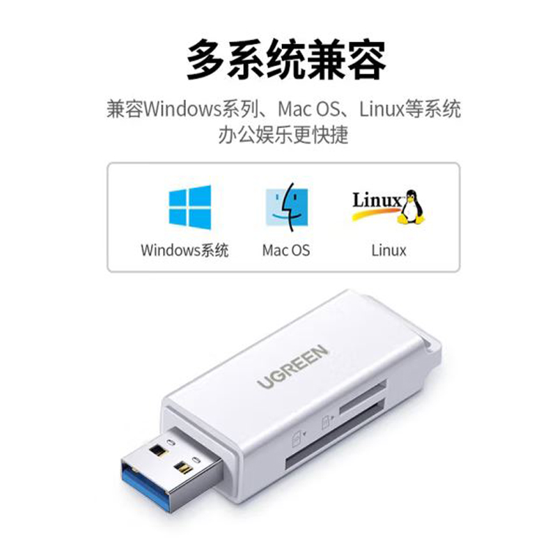 绿联(UGREEN)USB3.0高速读卡器 多功能SD/TF读卡器多合一 支持手机单反相机行车记录仪监控存储内存卡40751 |