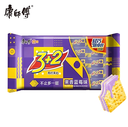 康师傅 3+2苏打夹心饼干 蓝莓味500g |