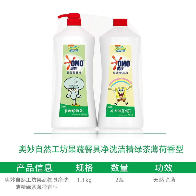 奥妙自然工坊果蔬餐具净洗洁精绿茶薄荷香型2*1.1KG |