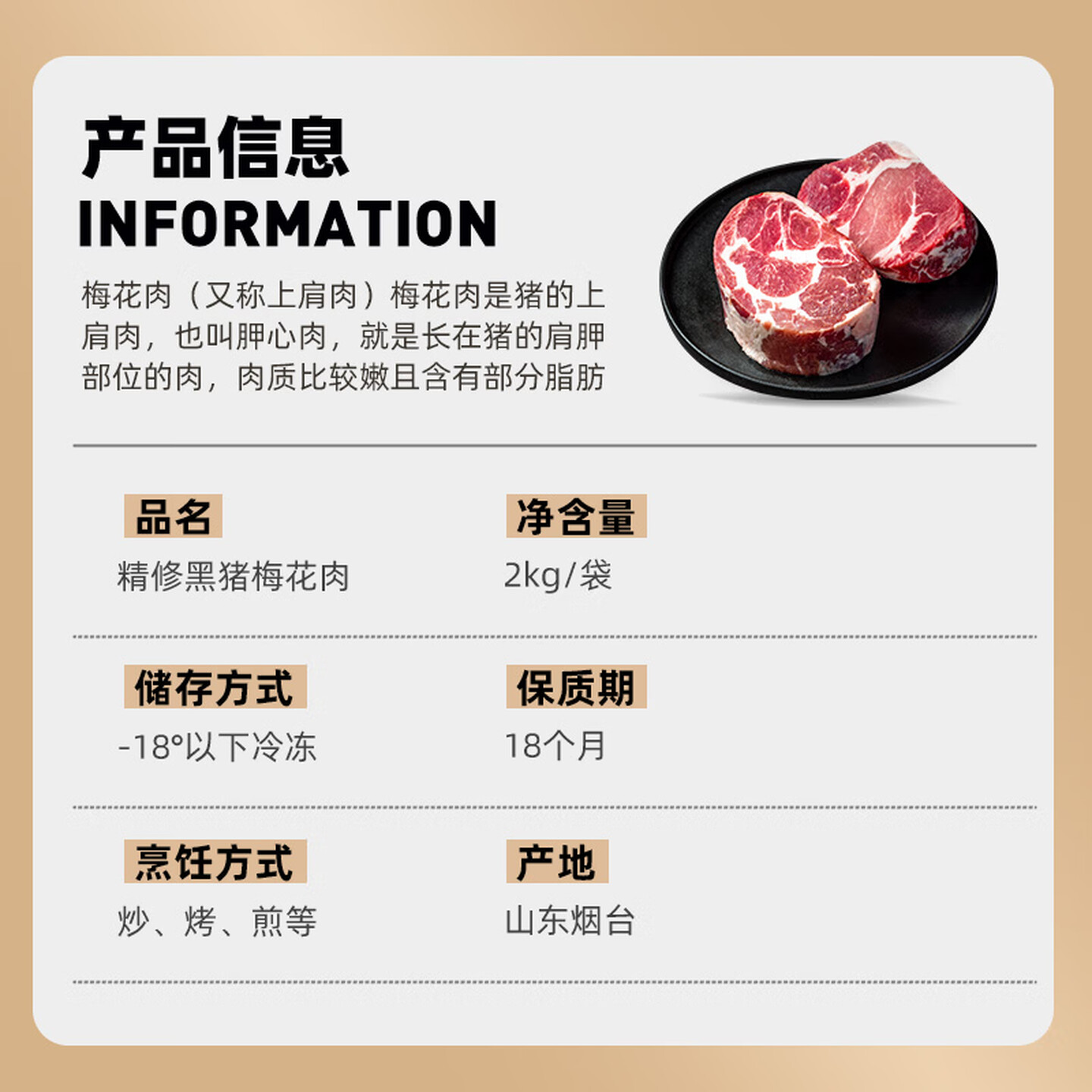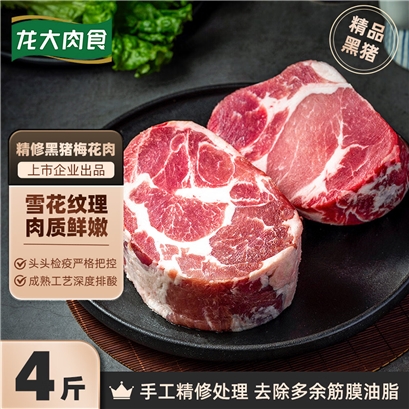 龙大肉食 黑猪梅花肉块净重4斤 猪肉生鲜梅花肉 冷冻黑猪肉块 |