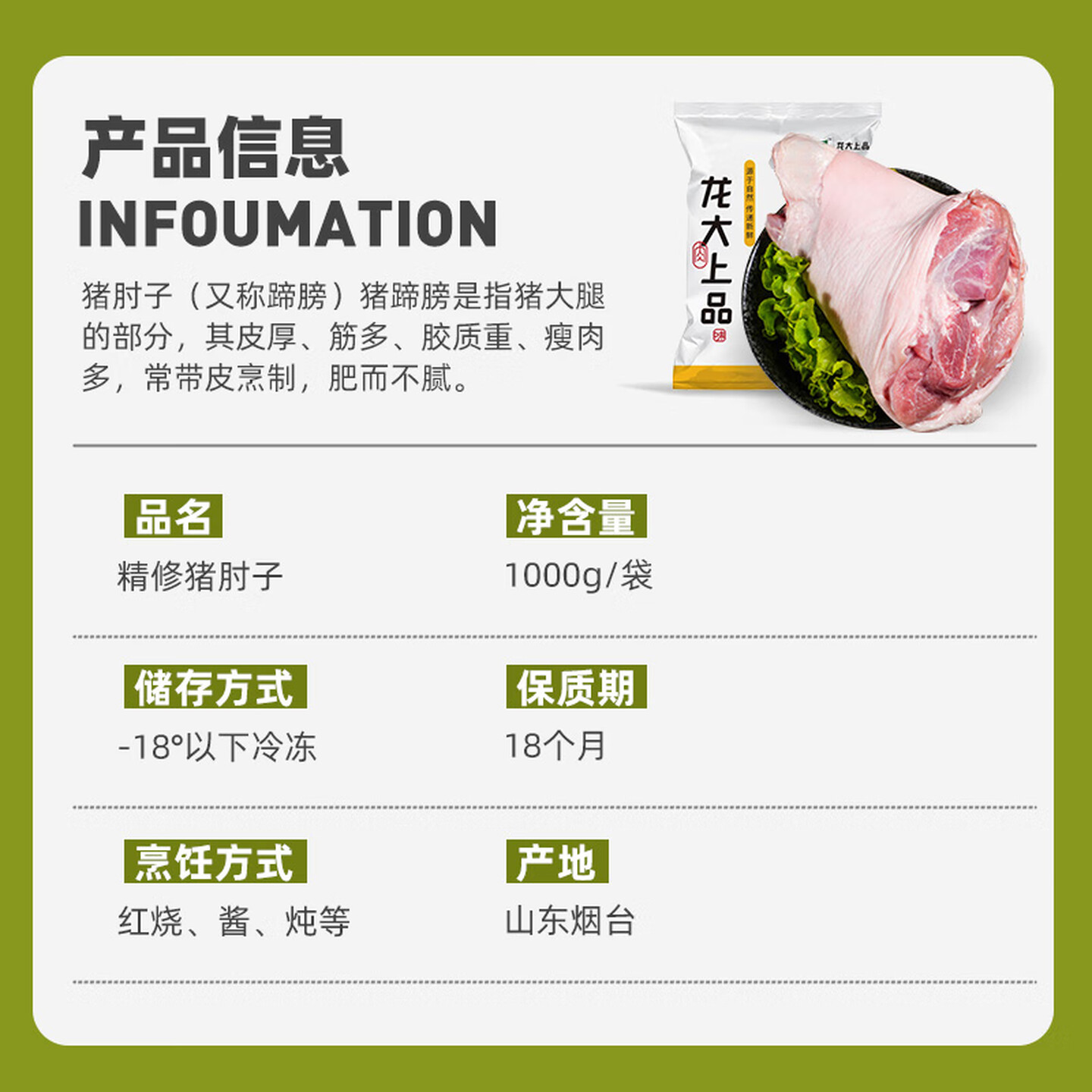 龙大肉食 猪肘子净重2斤 出口日本级 猪蹄膀猪肘子 猪肉生鲜 |