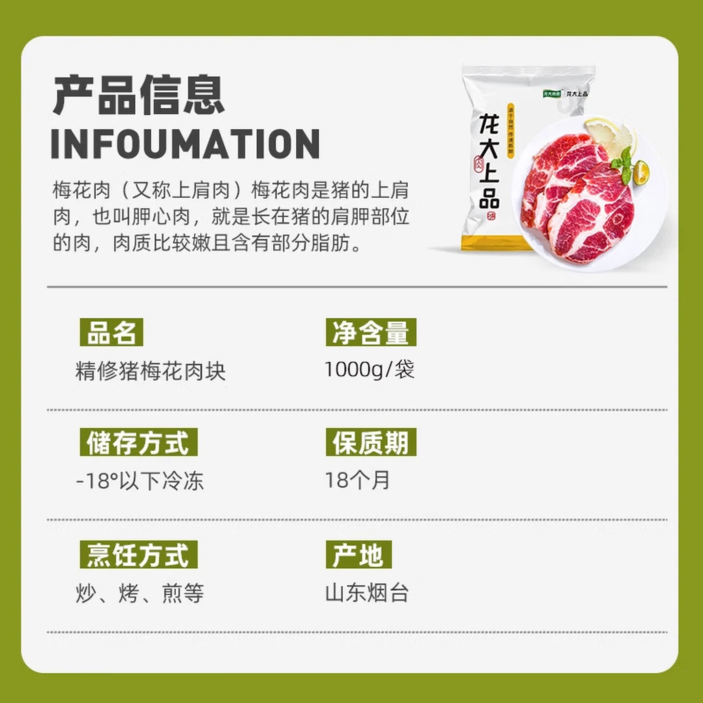 龙大肉食 烧烤猪梅花肉块2斤 出口日本级 |