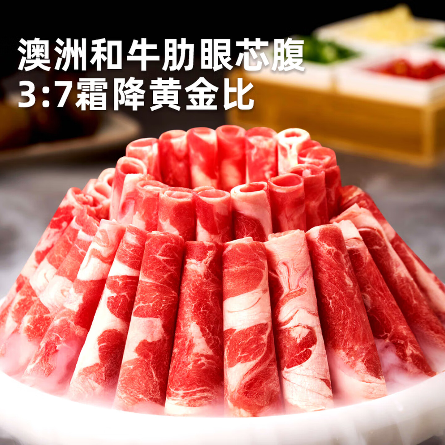 鲜罗纪澳洲和牛(谷饲)进口原切肥牛卷300g 雪花牛肉片 |
