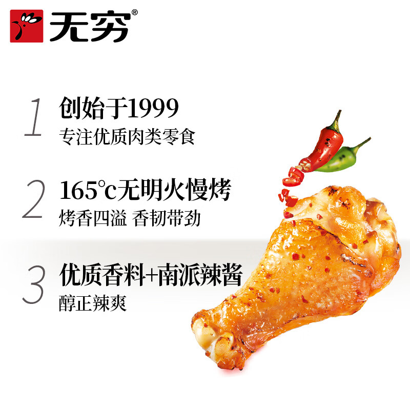 无穷鸡小腿烤鸡翅根香辣味300g |