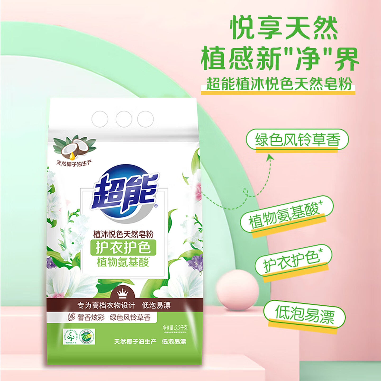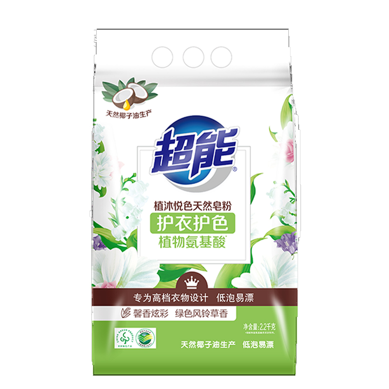 超能 植沐悦色天然皂粉 风铃草香 4.4斤 护衣护色 植物氨基酸 |