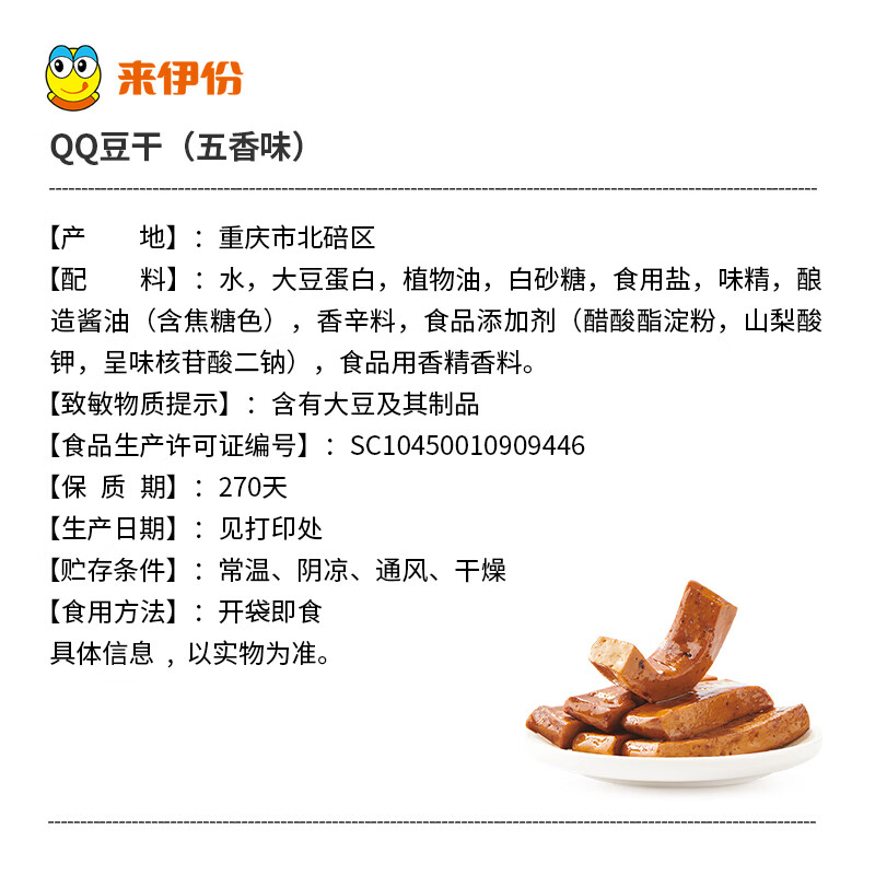 来伊份QQ豆干五香味500g |