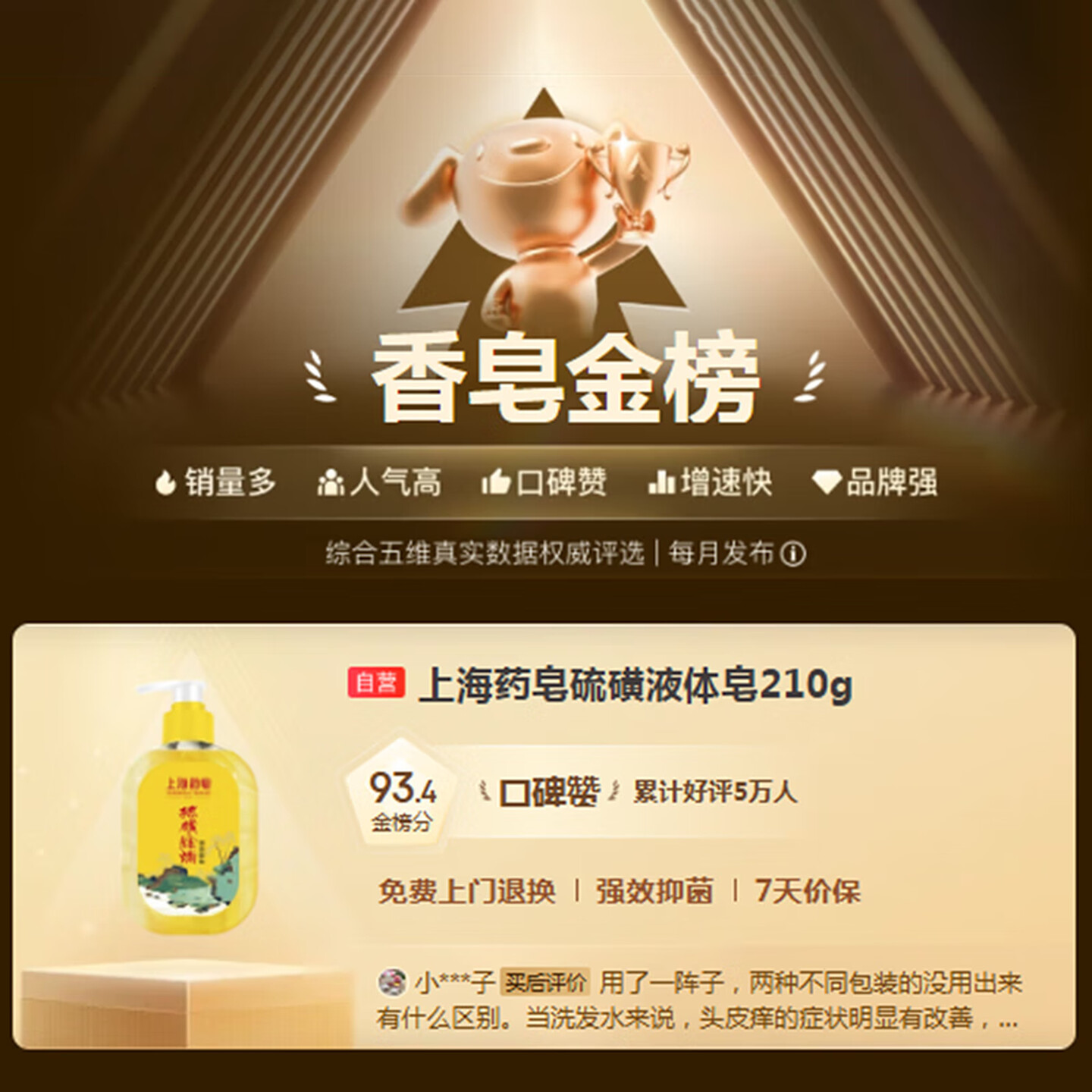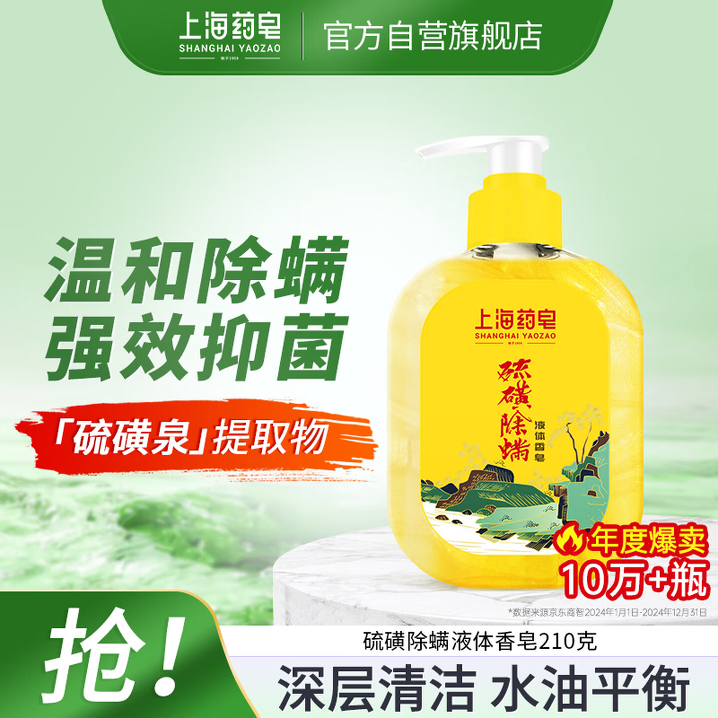 上海药皂香皂硫磺皂沐浴露除螨液体香皂乳210g |