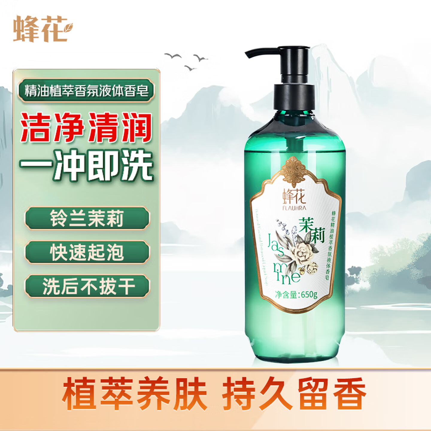 蜂花香皂精油植萃香氛液体皂(铃兰茉莉)650g沐浴露 |