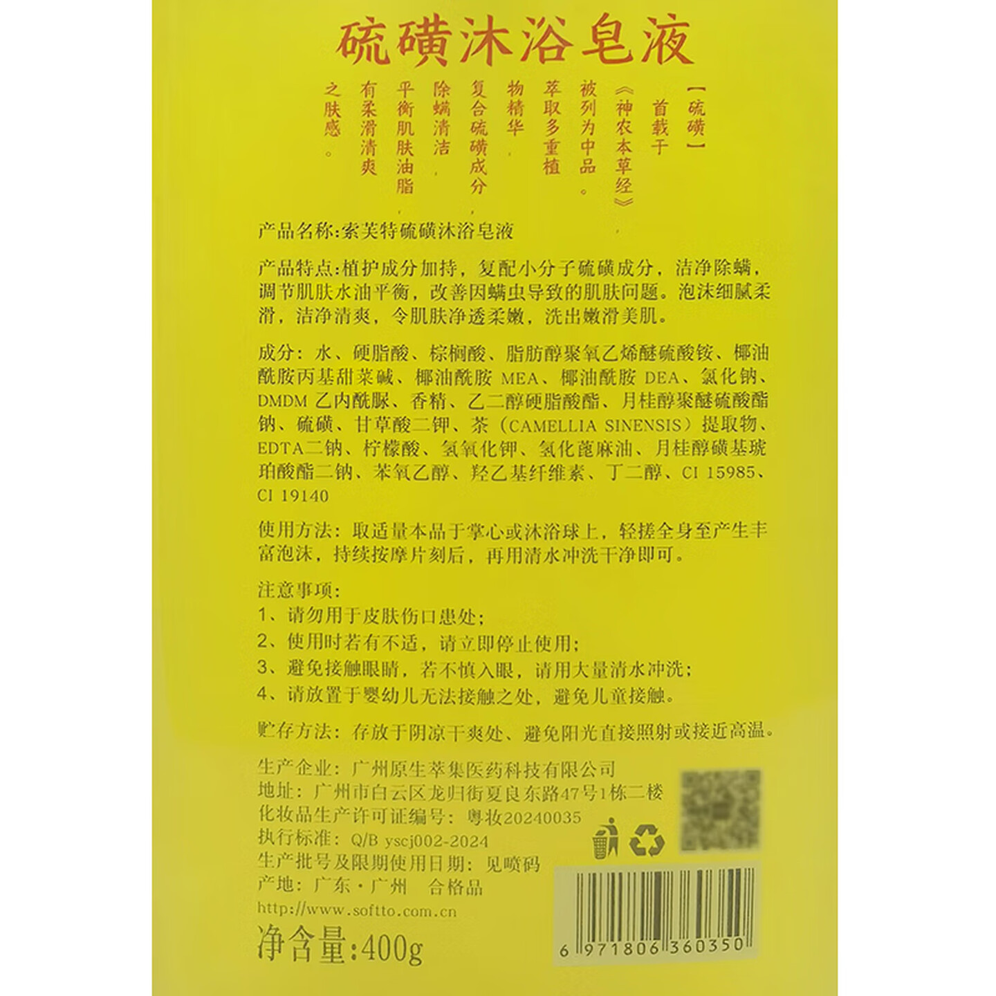索芙特硫磺皂液沐浴露400g |