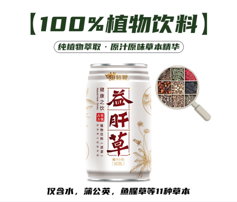 益肝草苗姑娘凉茶白罐310ml 凉茶饮料 |