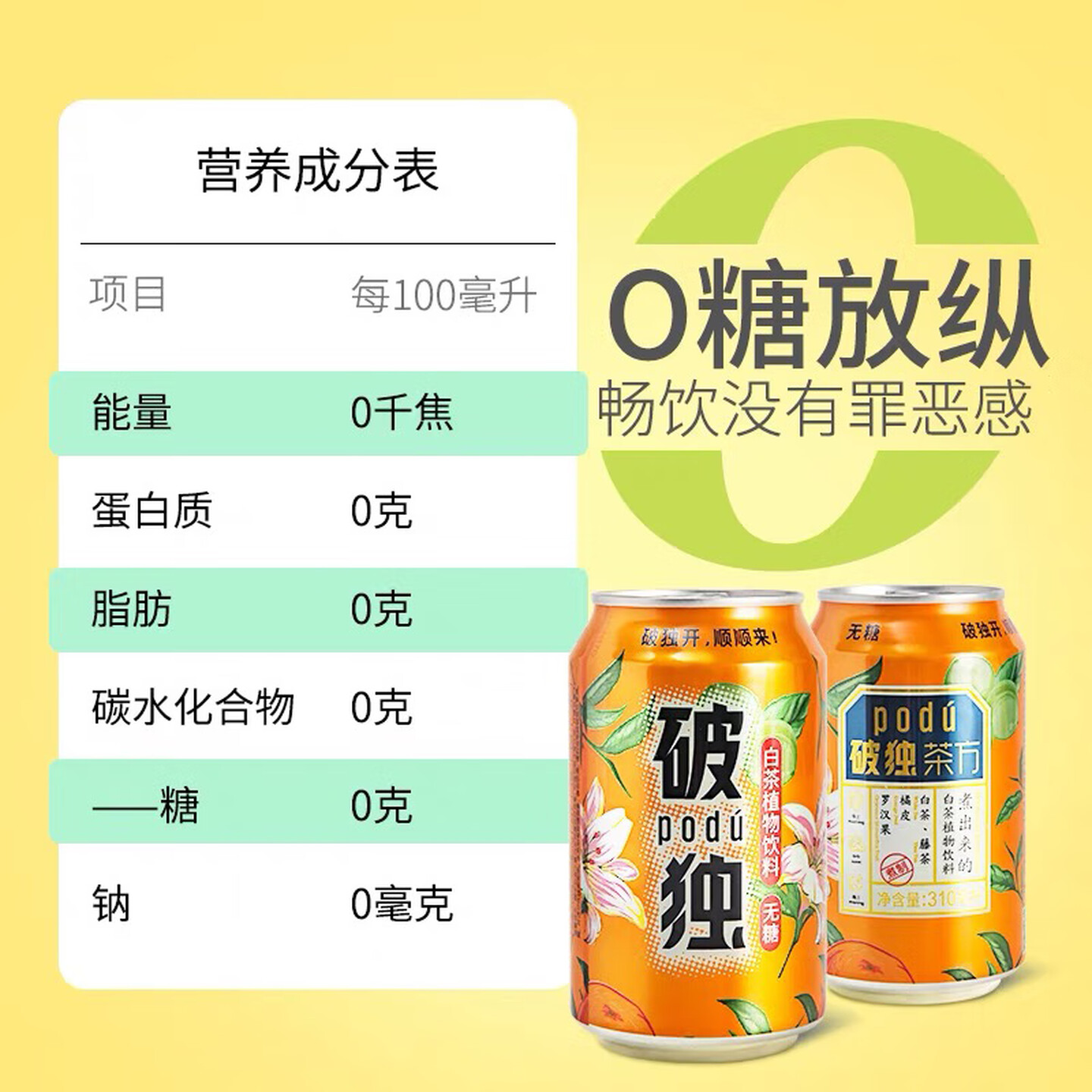破独白茶植物饮料无糖0糖0脂0卡310mL 凉茶饮料 |