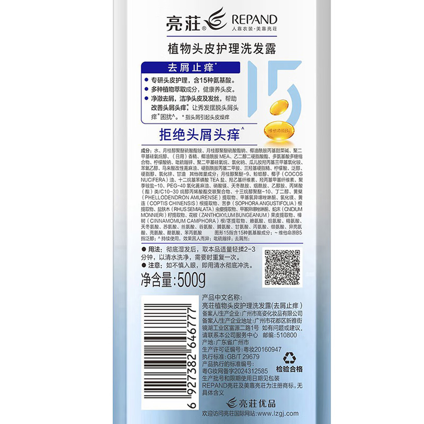 亮莊去屑止痒洗发水500g |