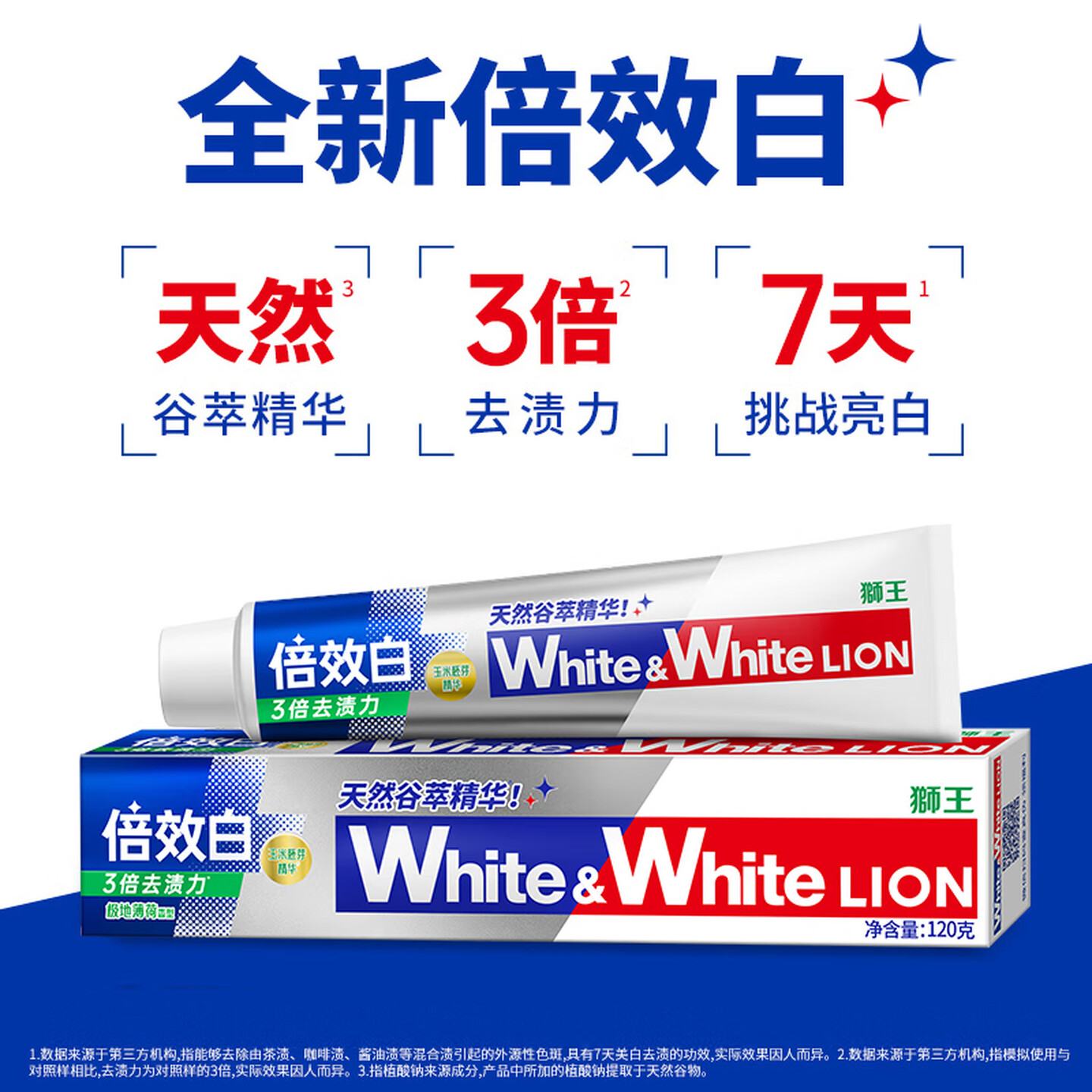 狮王(Lion)倍效白牙膏极地薄荷120g*3 |