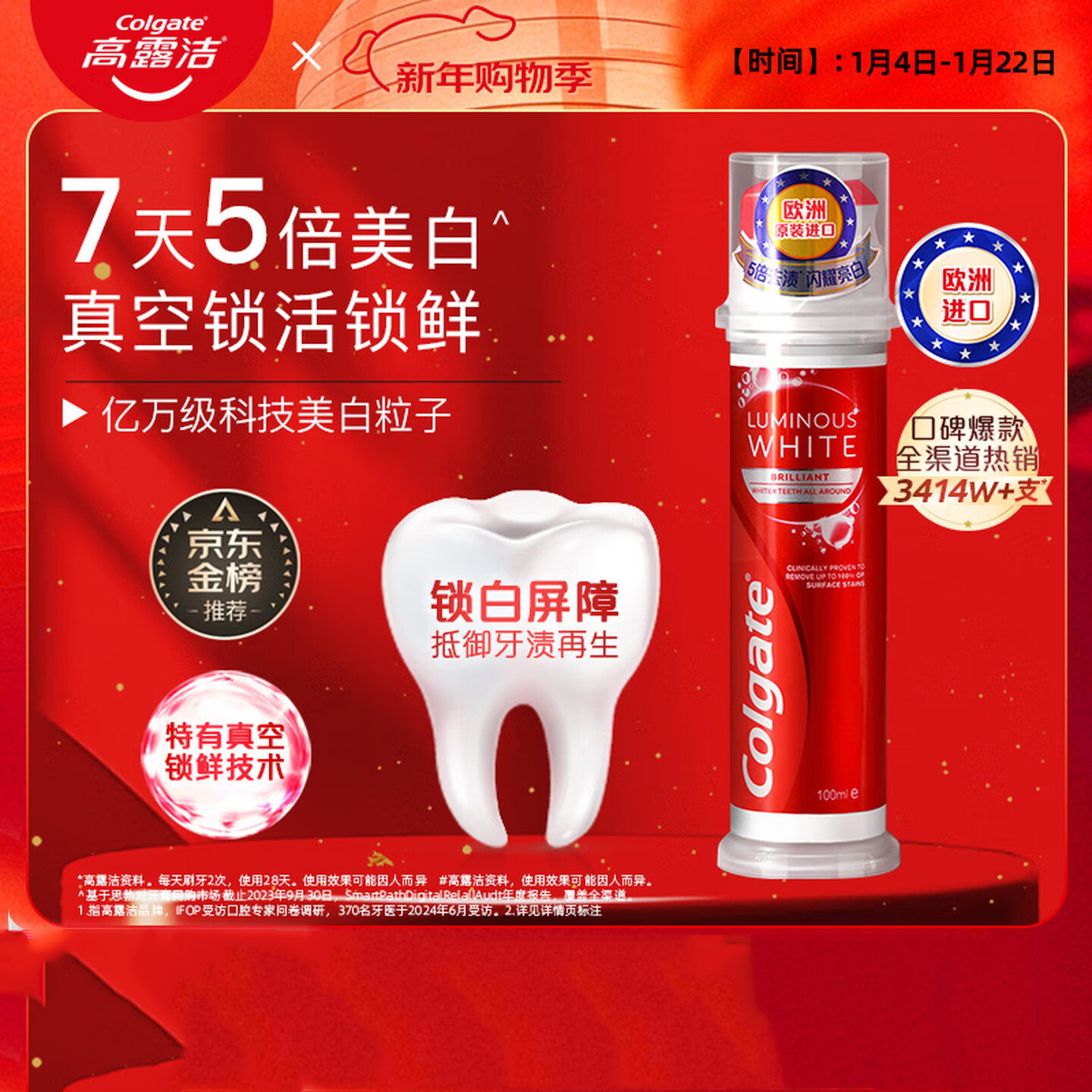 高露洁(Colgate)欧洲进口耀白去渍直立按压泵式美白牙膏100ml |