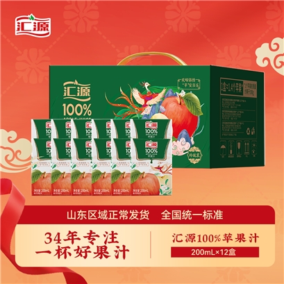 汇源100%纯苹果汁多种维生素饮料零添加200ml |