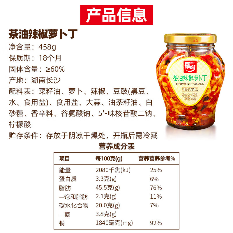 罗嗲茶油辣椒萝卜丁458g |