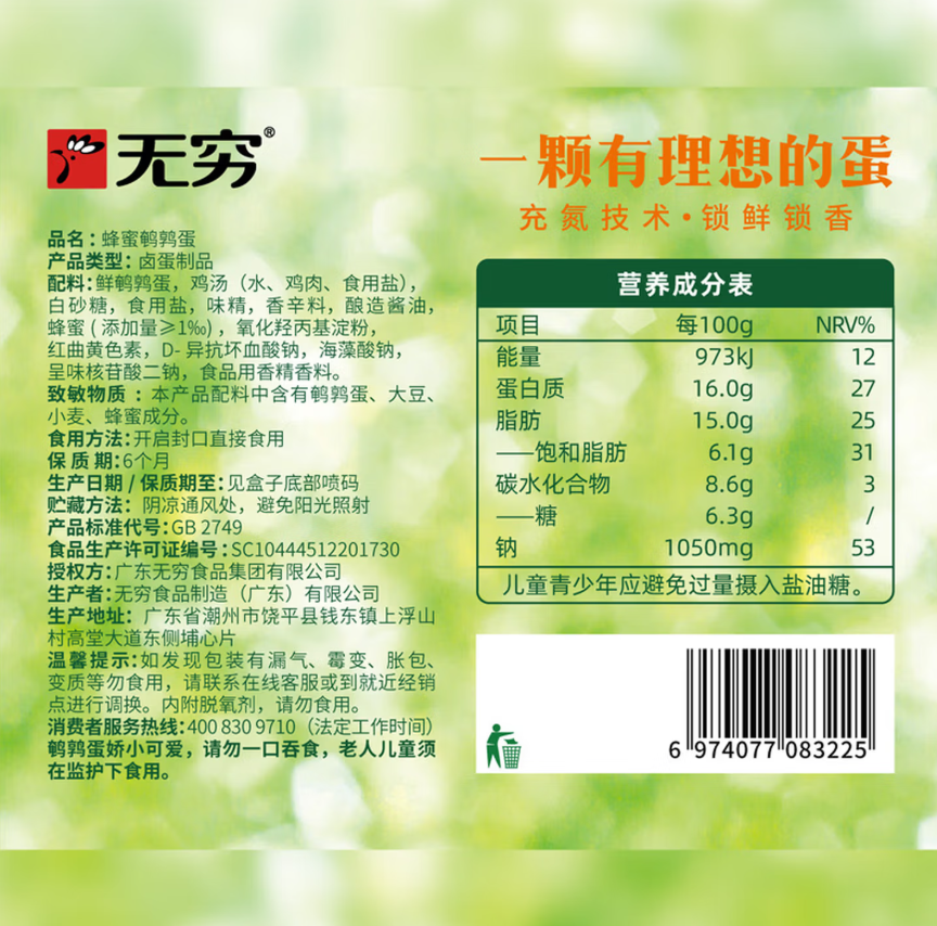无穷蜂蜜鹌鹑蛋礼盒装445g |