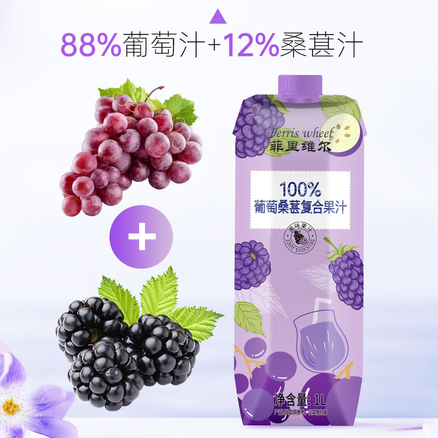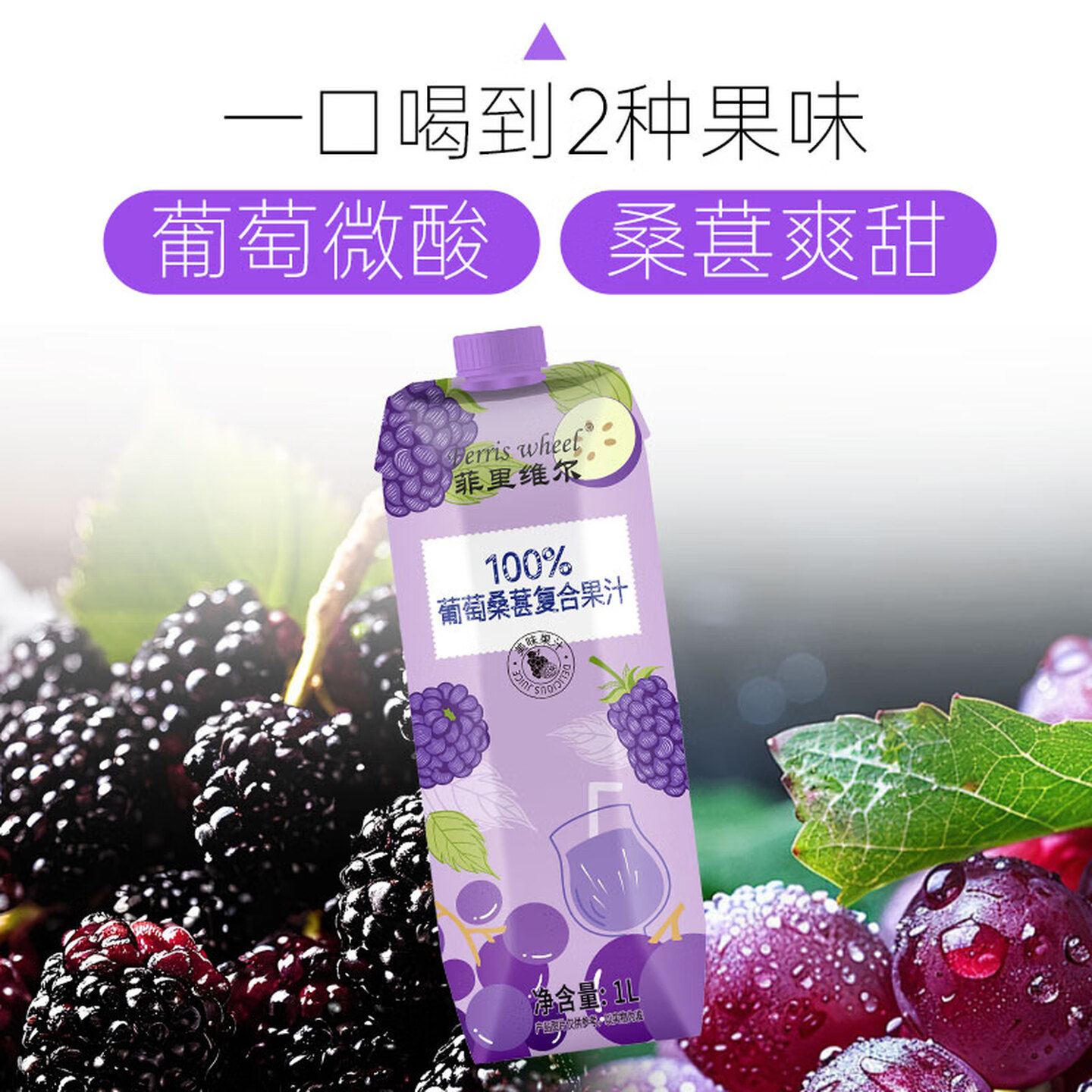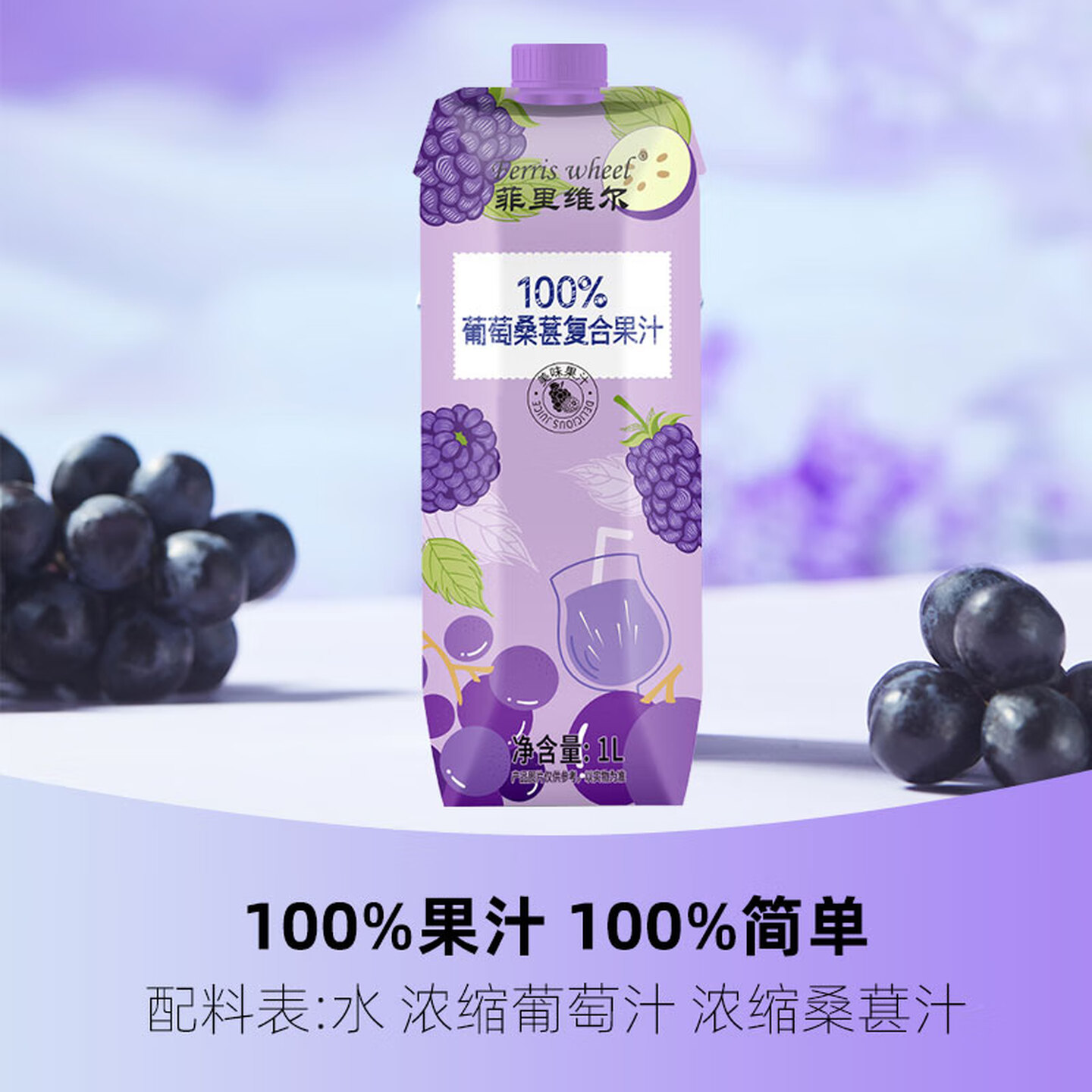 菲里维尔葡萄桑葚果汁100%复合果汁1L |