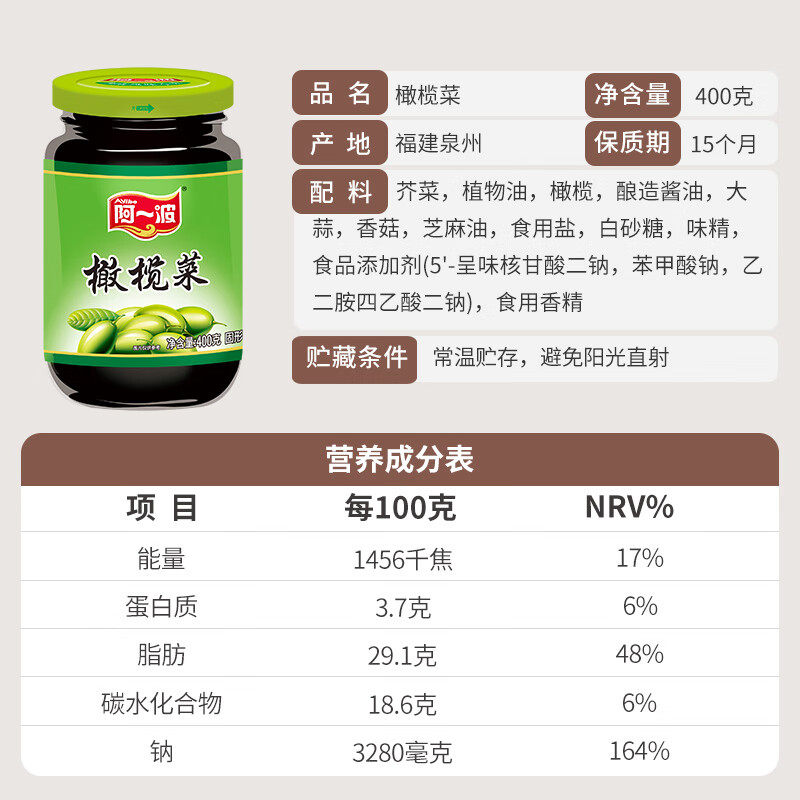阿一波橄榄菜大瓶装400g |