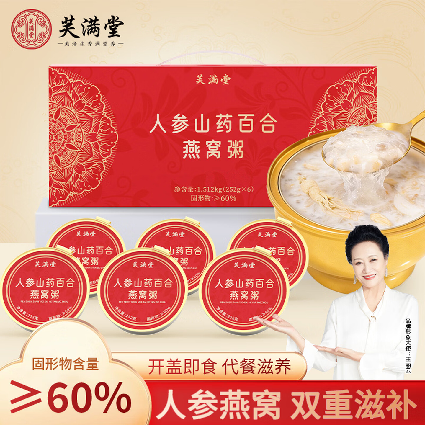 芙满堂人参山药百合燕窝粥礼盒 252g*1箱 即食粥 |