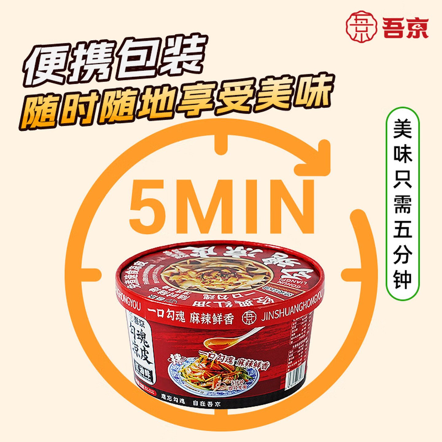 吾京勾魂面皮凉皮红油味118g*6桶 即食面 |