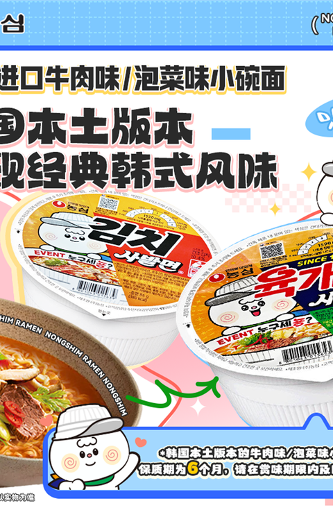 农心韩国进口牛肉味泡菜味碗面86g*6 即食面 |
