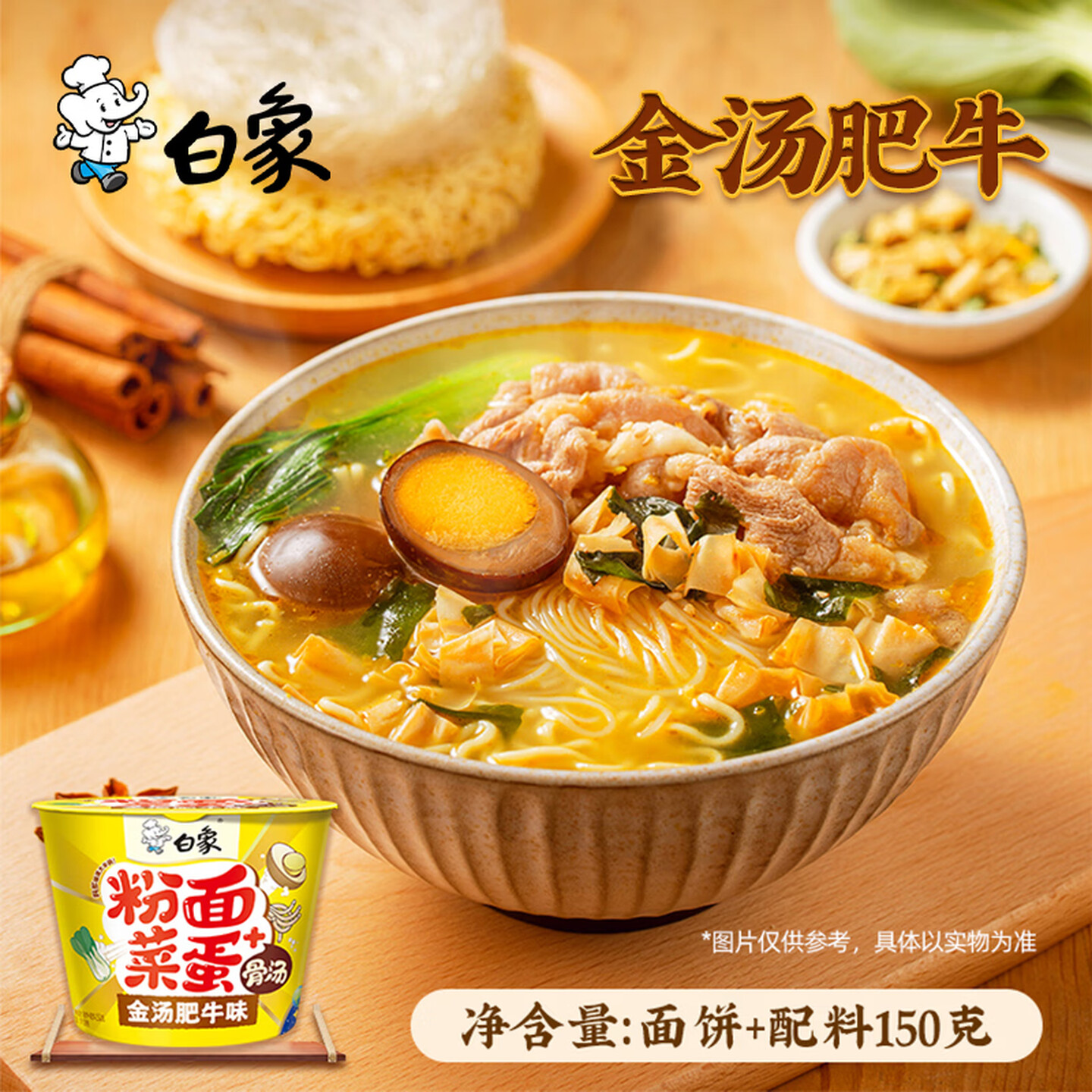 白象粉面菜蛋金汤肥牛味泡面粉丝卤蛋150g*12桶 即食面 |