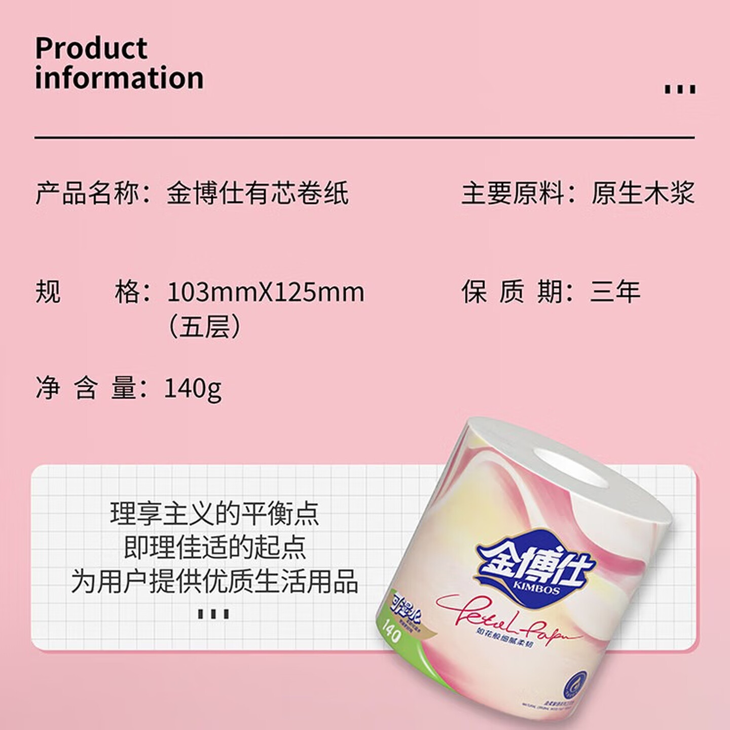 金博仕卷纸加厚有芯卷纸5层 140g/卷*20卷 |